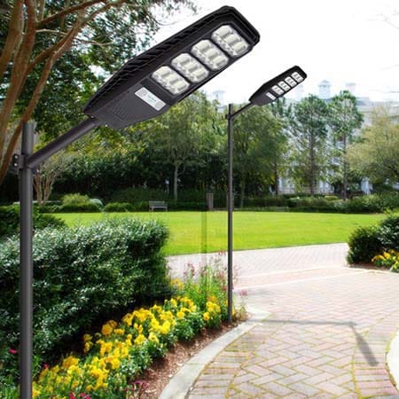 The Solar Street Light with Motion Sensor is equipped with a remote control providing a long-distance setting.  Different lighting modes and brightness for your choice.